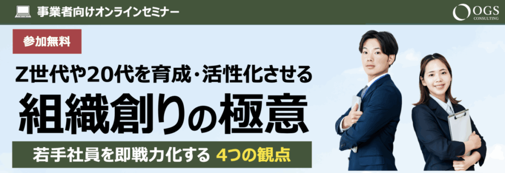 戦略連動型の人事評価制度構築を基軸とした、本質的な組織開発を支援するOGSコンサルティング株式会社(本社:大阪府大阪市中央区、代表取締役社長:深石 圭、以下、「OGSコンサルティング」)は、この度、京都銀行様が主催する事業者向けオンラインセミナーに登壇いたしましたことをお知らせいたします。