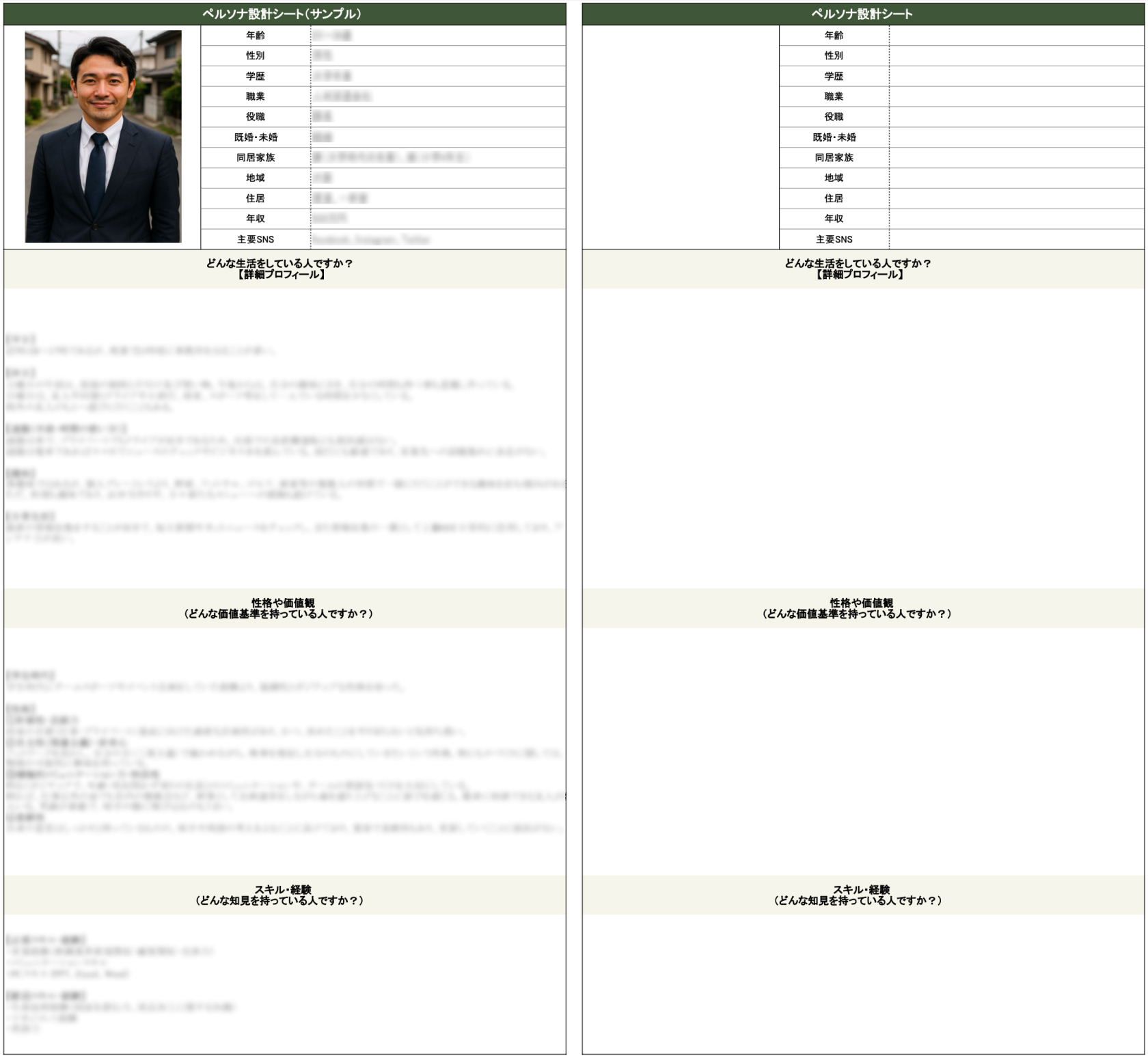 御社の経営理念(MISSION・VISION・VALUES)や事業戦略から、どのような人財を採用していきたいのか、「あるべき人物像(ペルソナ)」を設計・定義していきます。人財採用はマーケティングと全く同じ概念ですので、マーケティングの戦略的思考に基づいてペルソナを設計することから実行していきます。