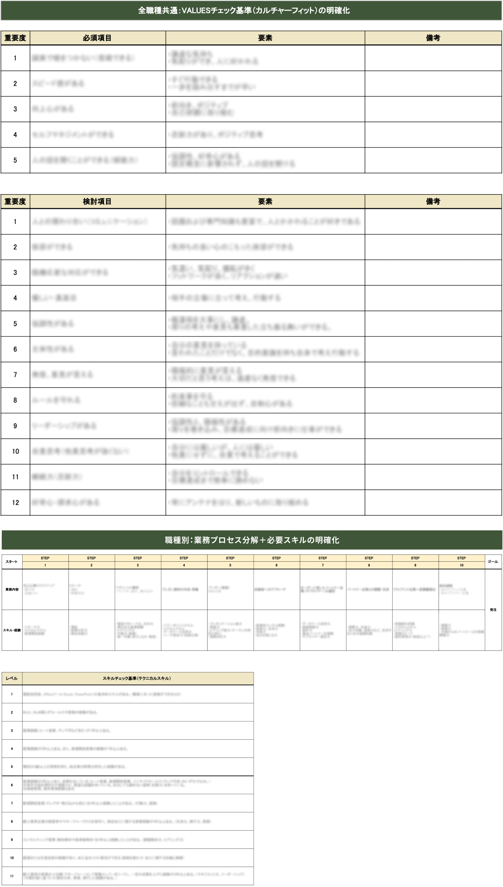 職種や役割に応じて必要となるテクニカルスキル(業務遂行能力)を見極める基準を明確化します。